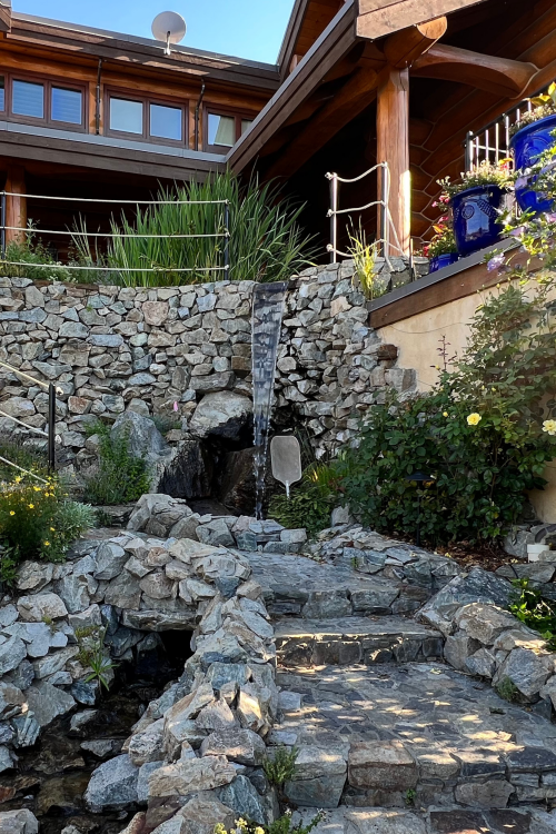 You’ll find a waterfall, resort style pool with views of vineyard and the Okanagan Lake, an outdoor dining set with swing that also overlooks the vineyards and lake, two pergolas big enough to seat 6 people with BBQs, a large lawn for events or lawn games.